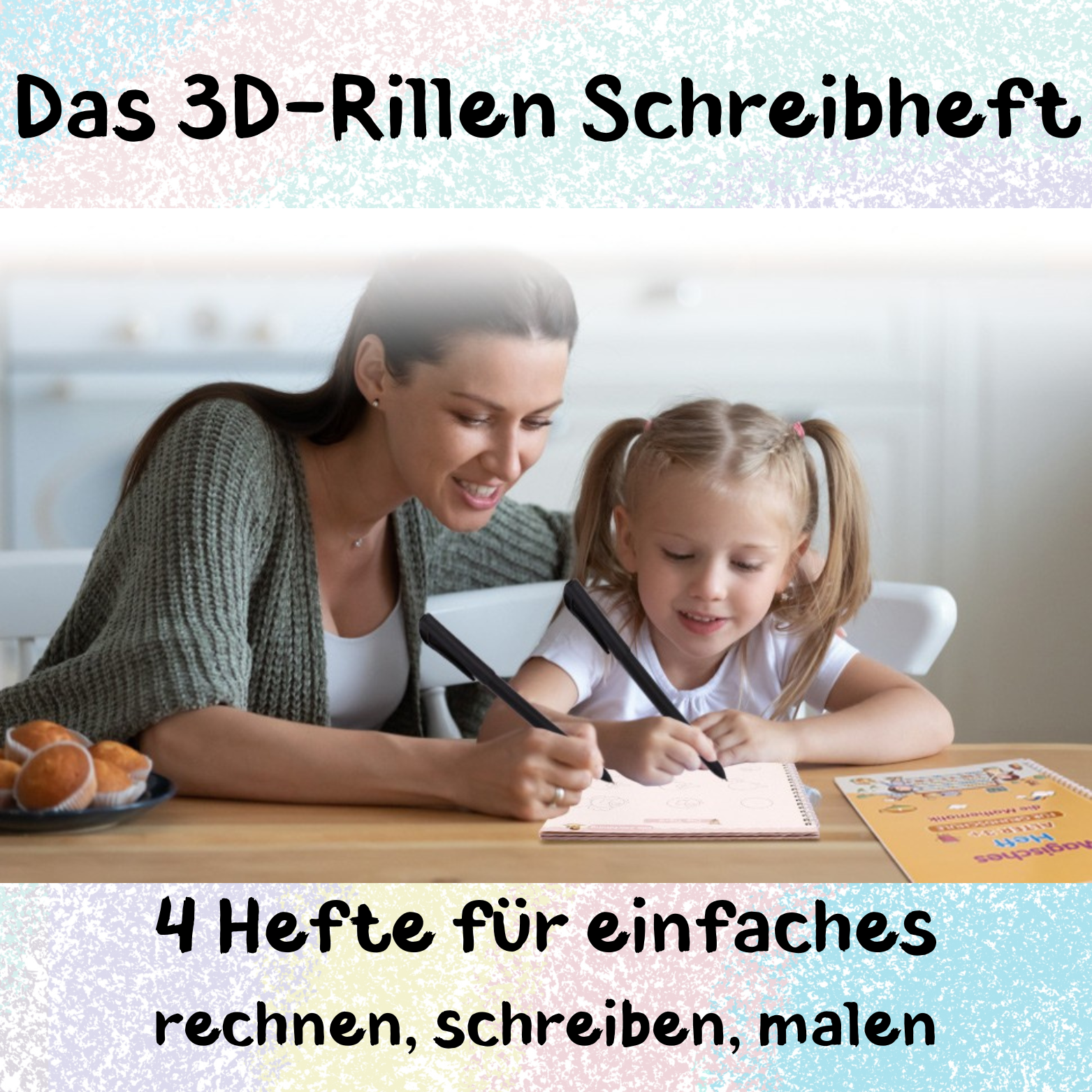 Kein verrutschen beim schreiben, da das tiefe einprägen der Rillen in das Übungsheft das Führen des Stiftes unterstützt. Das Erlernen der richtigen Stifthaltung wird somit erleichtert und dein Kind kann sich voll auf den Schreib-Spaß fokussieren.